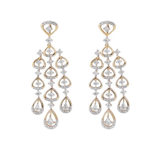Features cascading pear-cut and round-cut cubic zirconia