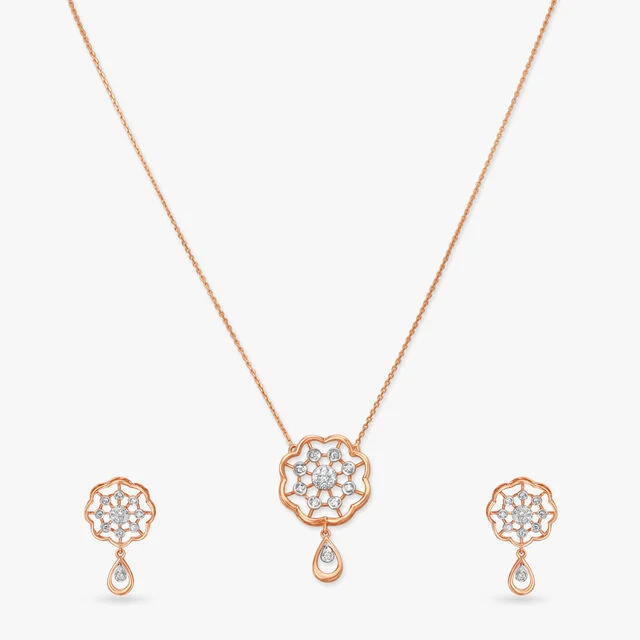 Set includes a diamond-studded necklace and earrings